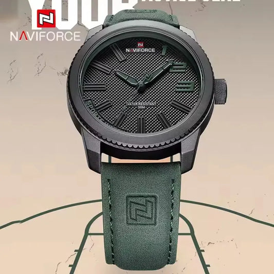 NAVIFORCE 9202L Men’s Sport Watch – Waterproof, Shockproof, Leather Strap, Fashion Casual Design