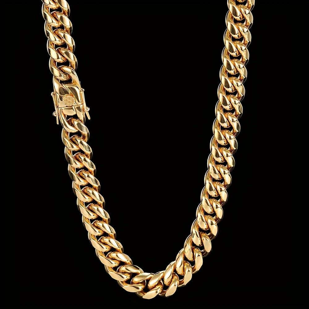 2PCS 18K Gold Plated Cuban Chain Set – Men's Stainless Steel Necklace and Bracelet, Luxury Golden Jewelry